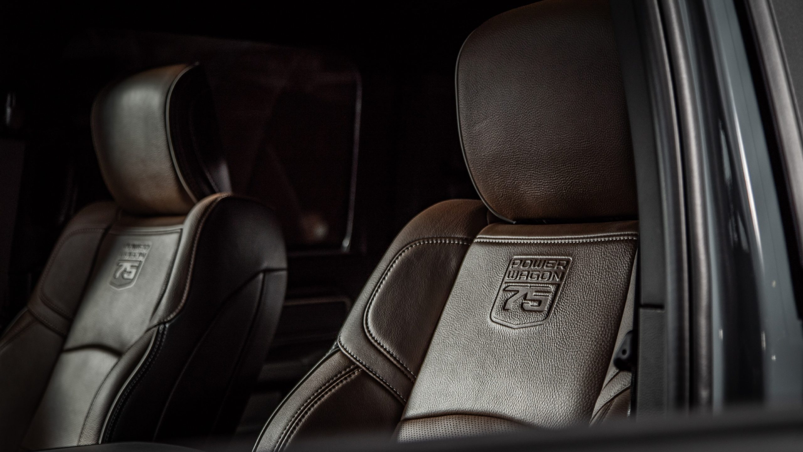 With the changes to the exterior, you would think that the inside would keep most of the Power Wagon’s original minimalistic characteristics that have shown its rugged nature in recent years. Instead, the 75th Anniversary Edition takes the Power Wagon upscale. Gone is the front bench seat and shift-on-the-fly floor-mounted transfer case shifter. They have been replaced with a pair of premium Mountain Brown leather bucket seats from the Limited Longhorn and outfitted with commemorative “Power Wagon 75” logos, center-console, and for the first time ever on a Power Wagon, an electronic transfer case.