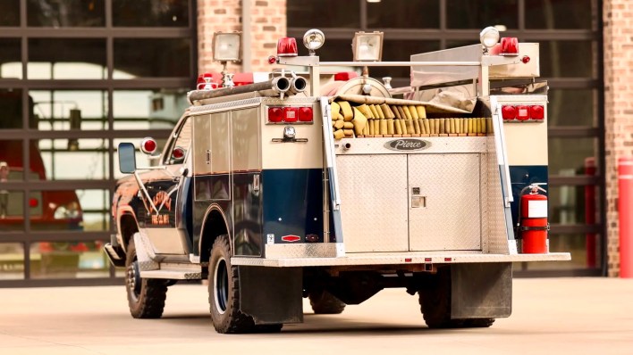 This 1978 Dodge W400 started life as a chassis-cab model, which means it left the factory without a traditional bed, ready for customization. Pierce Manufacturing, a well-known fire apparatus builder from Appleton, Wisconsin, added a utility body designed for firefighting. This included fitting the truck with a 200-gallon water tank, a Waterous CPK-3 water pump, and a Winco 3500-watt generator. The truck’s job was to act as a “mini attack pumper” for the Castanea Fire Company in Lock Haven, Pennsylvania, where it served for many years.